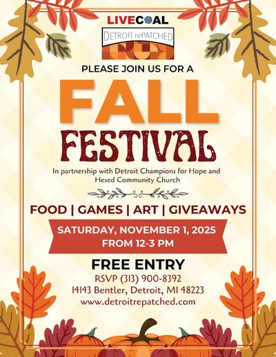 Join us on 11/1/2025 from 12pm-3pm for our Fall Festival RSVP at (313) 900-8392 or email admin@livecoal.org.